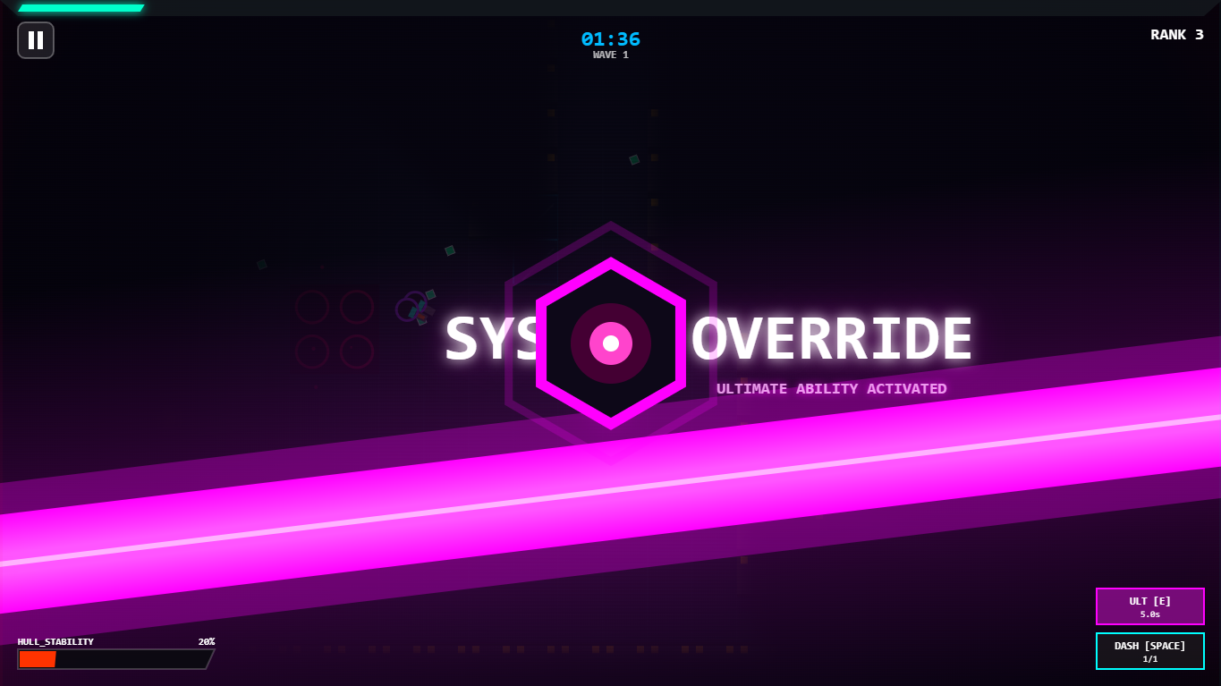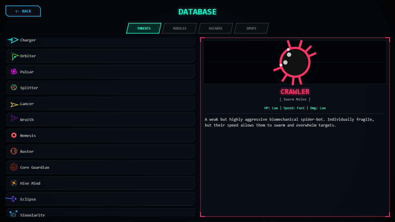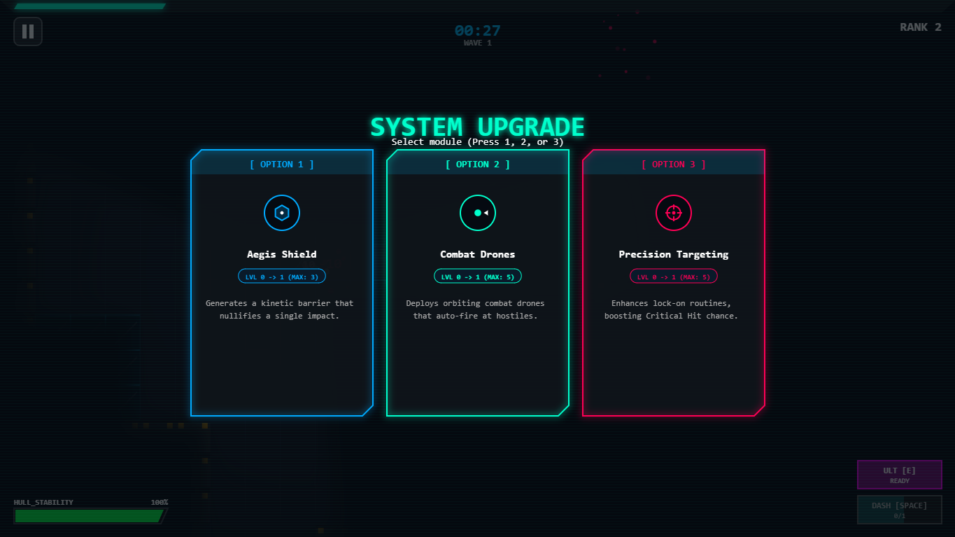 Fight through endless waves of enemies that get faster, smarter, and meaner over time. Collect DATA CORE and unlock upgrades mid-run and take down massive boss enemies before they overwhelm you.